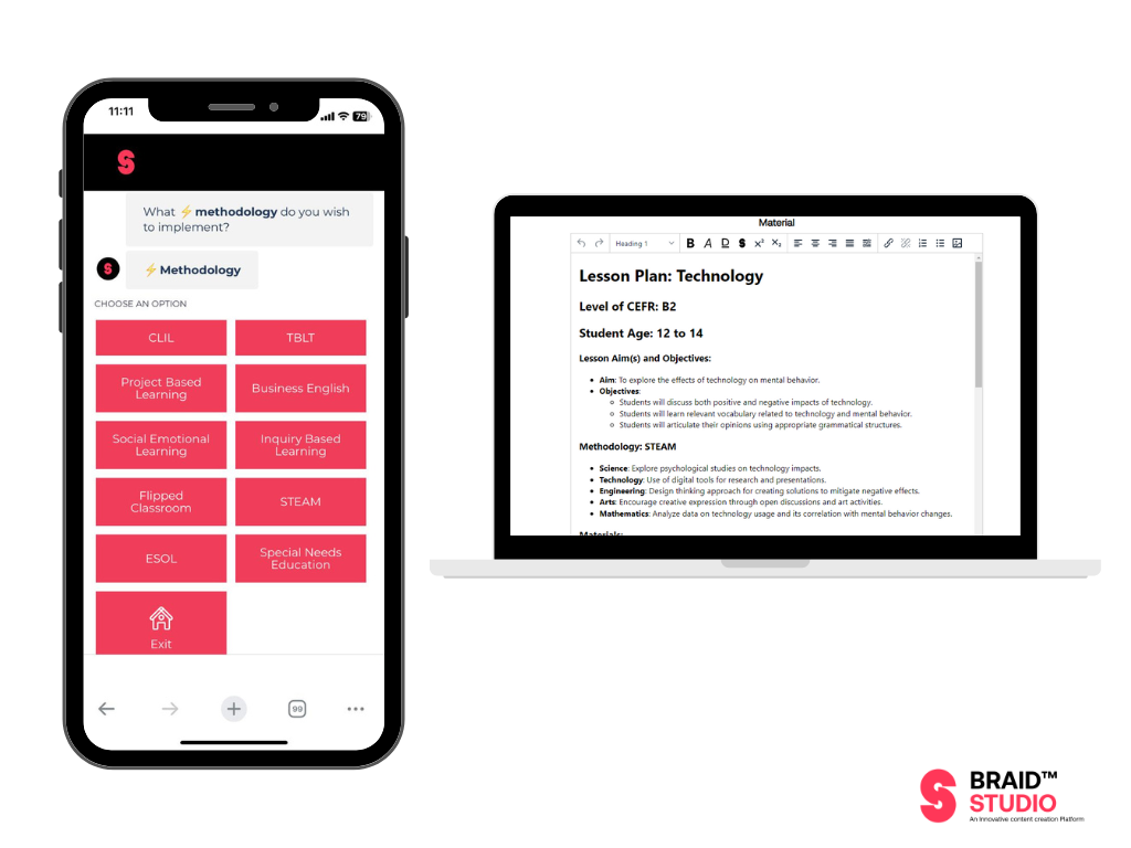 Complementing this is Braid Studio, our innovative content creation platform that bridges the gap between human expertise and AI capabilities. This isn't just another creation tool – it's a space where human creativity and emotional intelligence merge seamlessly with AI technology to produce truly engaging ELT materials.