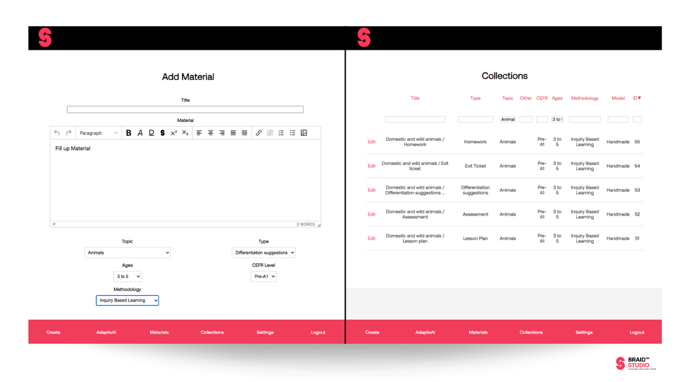 In today’s fast-changing educational landscape, Braid Studio is all about bringing together the best of both worlds: technology and the human touch. The "Collections" section is a reflection of that, filled with authentic, teacher-created resources that are not only practical but also deeply connected to students' lives and cultures. By giving ELT professionals access to materials that are relevant, adaptable, and easy to integrate, Braid Studio helps teachers do what they do best—create meaningful learning experiences. With the perfect blend of human expertise and AdaptivAI’s innovative tools, we’re proud to support educators in inspiring students and bringing learning to life in the most impactful way possible.